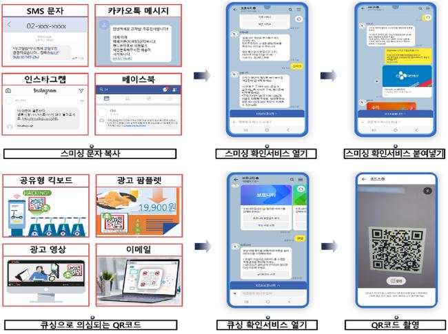 이용자는 카카오톡 ‘보호나라’ 채널에서 수신한 문자를 복사해 정상 여부를 확인할 수 있고, 불법스팸은 한국인터넷진흥원의 간편신고 앱이나 휴대전화 간편신고 기능을 통해 즉시 신고할 수 있다.