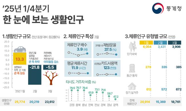 2025년 1분기 생활인구, 2월 · 3월 감소세에도 1월 큰 폭 증가