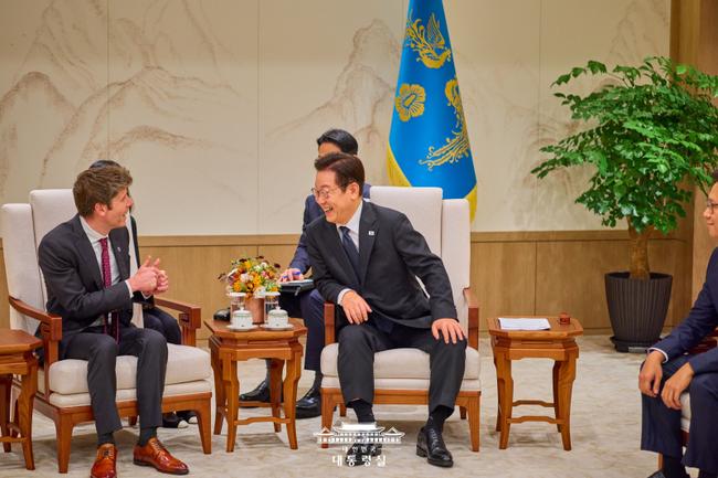 이재명 대통령은 1일 오후 6시, 서울에서 오픈AI의 샘 알트만 대표를 접견하고, AI 인프라 협력, 국내 기업과의 기술 파트너십, 지역 AX 산업 육성 방안에 대한 의견을 교환했다.