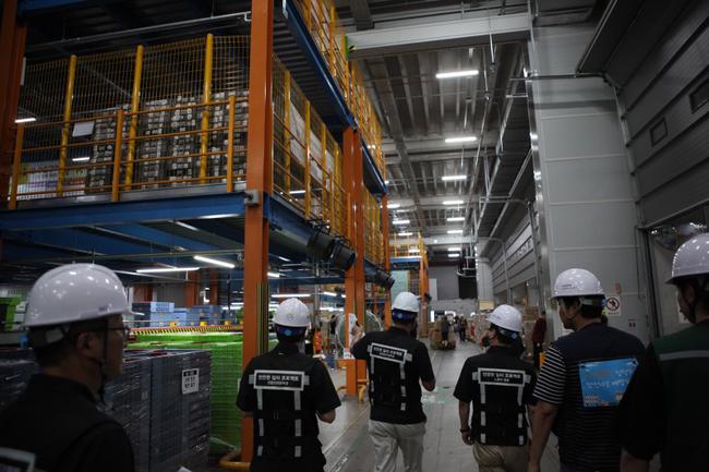 김영훈 노동부 장관이 지난 7월 30일(수) 오후, 쿠팡 동탄물류센터를 불시 방문하여 폭염 속 노동자들의 작업 환경을 점검하고 있다.