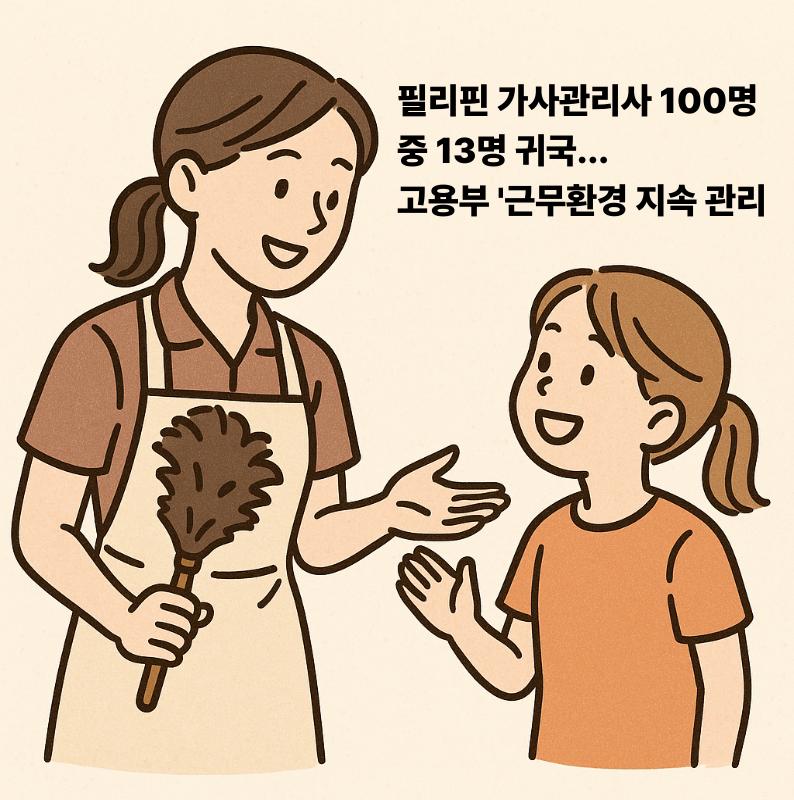 고용노동부는 국내에서 활동 중인 필리핀 가사관리사 100명 가운데 현재까지 총 13명이 귀국했다고 26일 밝혔다.